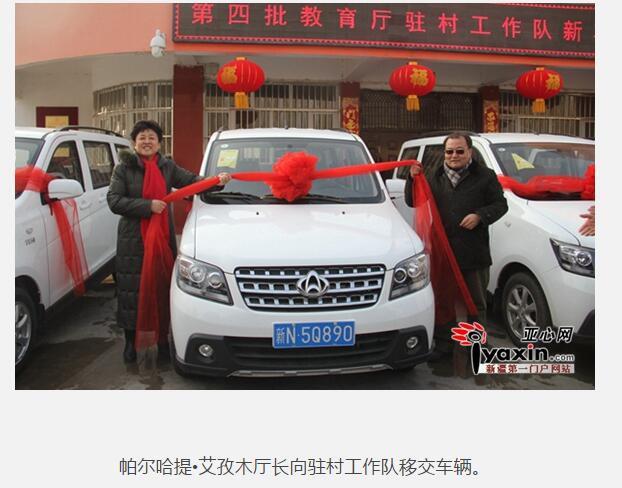 自治区教育厅对新一轮驻村工作寄予厚望,自治区教育工委副书记、教育厅党组书记梁超专程前往机场为工作队员送行,在库车县调研慰问教育厅驻村工作队的自治区教育工委副书记、教育厅厅长帕尔哈提·艾孜木同志专程赶到机场迎接,并参加了新一轮教育厅驻村工作队新车启用仪式,为新增5个驻村点和支教点赠送价值36万元的6辆交通用车。帕尔哈提·艾孜木厅长强调,“三年来,教育厅驻村干部牢记使命,积极开展工作,坚守基层一线,紧紧围绕总目标,做了大量扎实有效的工作,得到了广大农民群众的拥护和上级的肯定,夯实了基层基础。教育厅作为“访惠聚”坚强后盾,积极为驻村干部创造良好的工作条件,解决工作、生活中遇到的各种困难和问题,搞好后勤服务,让驻村干部安心住村,静下心来为基层群众服务。这一个月里将有两批队员压茬驻村,希望大家加强工作对接,认真总结推广好的经验和做法,撸起袖子加油干,确保新老队员的平稳交接,推动“访惠聚”工作取得实效”。